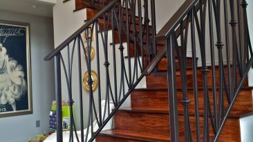 Construction photo of guard rail and wall mounted hand rail at custom home in...