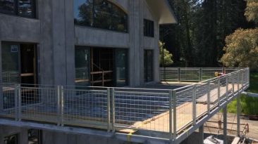 Hot dipped galvanized deck guard railing with architectural welded wire mesh...