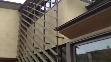 Radius railing with face mounted pickets, heat formed transitions, and a satin...